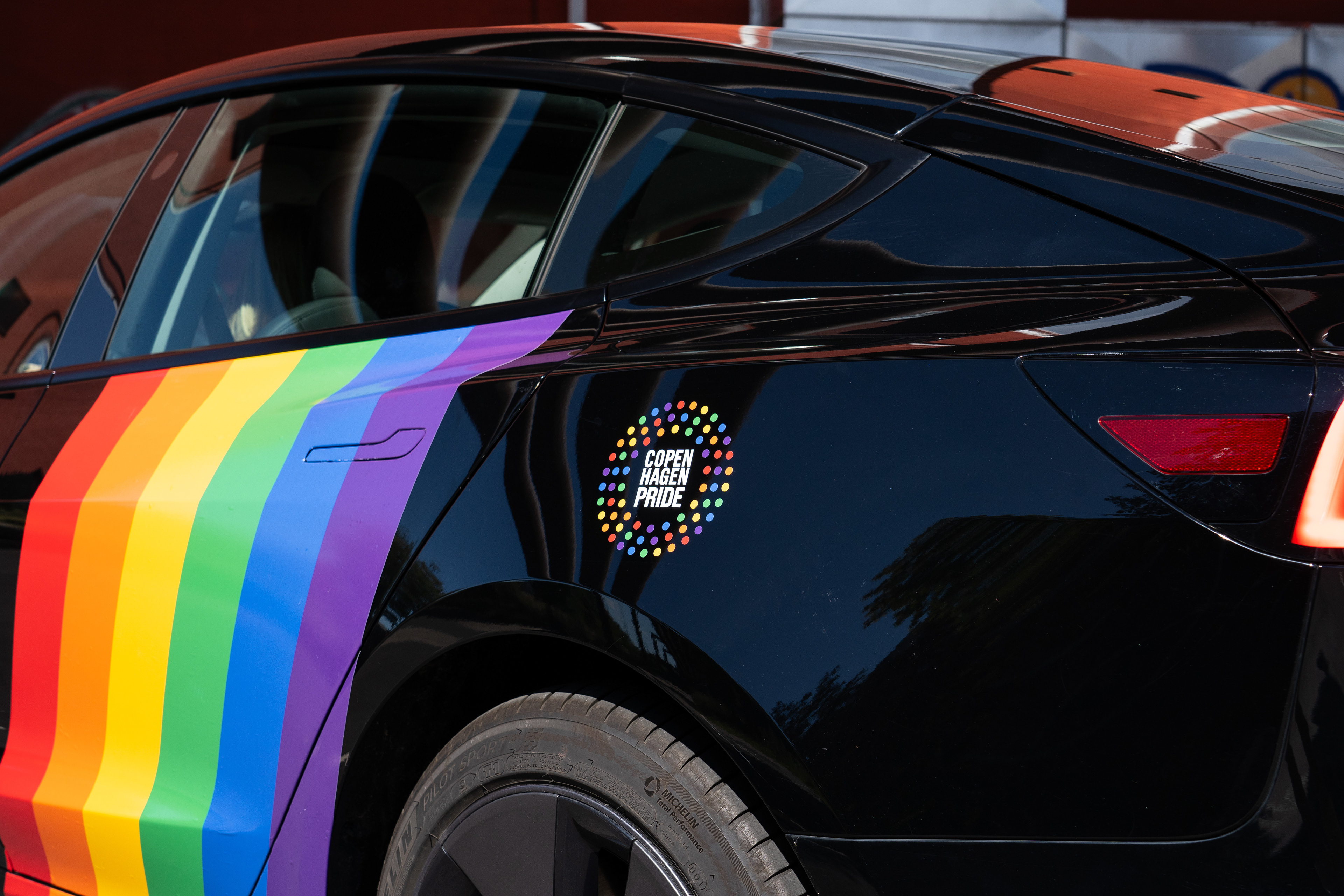 With a limited budget for the 2024 Pride partnership, we had to design and foil the car ourselves. It had to be colorful but simple due to our non-existent knowledge of car foiling. The pressure was high, as the car would be the safety car leading the entire Copenhagen Pride Parade in 2024.